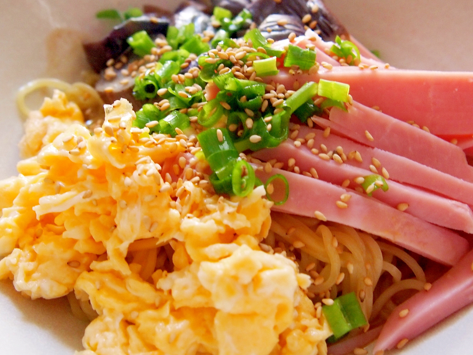 なすとハムと卵の冷やし中華 レシピ 作り方 By まるっとまる 楽天レシピ