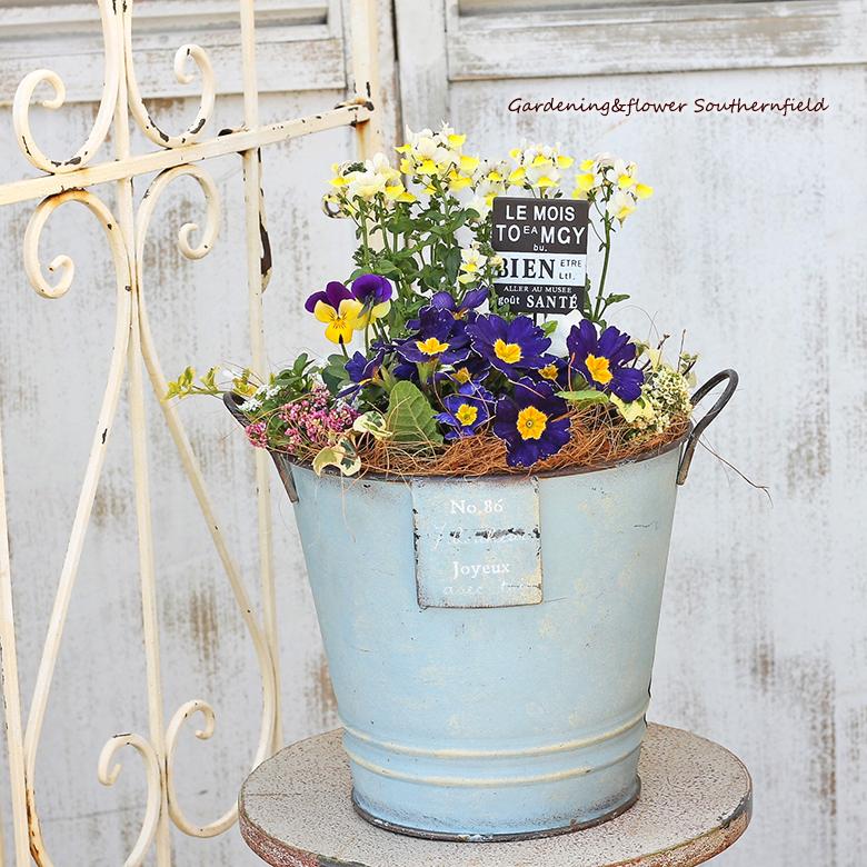 現品販売 季節の花寄せ植え ネメシア プリムラ ナチュラルアンティーク調ブリキポット Blue ピック付き Ha 306 サザンフィールド Gardeningshop 通販 Yahoo ショッピング
